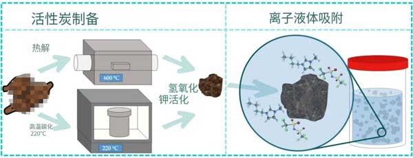 目前,处理含水相中离子液体的方法包括高级氧化法、生物降解法、膜分离法和吸附法等。其中,吸附法因其操作简便、成本相对较低、设计灵活且通常不产生有害副产物等优势,被认为是最具应用前景的技术路径之一。吸附法的核心在于吸附剂。活性炭作为最传统且应用最广泛的吸附剂,具有发达的孔隙结构、巨大的比表面积和丰富的表面化学官能团,对多种有机污染物展现出卓越的吸附能力。然而,商业活性炭生产成本较高,且对特定污染物(如离子液体)的吸附选择性和容量仍有优化空间。