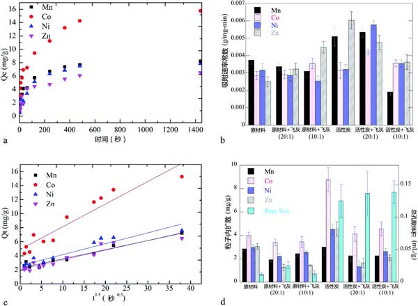 图3:活性炭对重金属的吸附动力学。