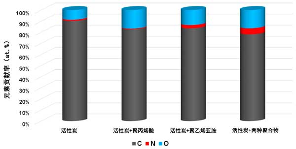 图3:在25℃下吸附聚合物之前和之后活性炭表面的元素组成。