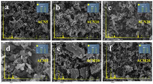 对于Mg改性样本,命名为ACM5、ACM10、ACM20;