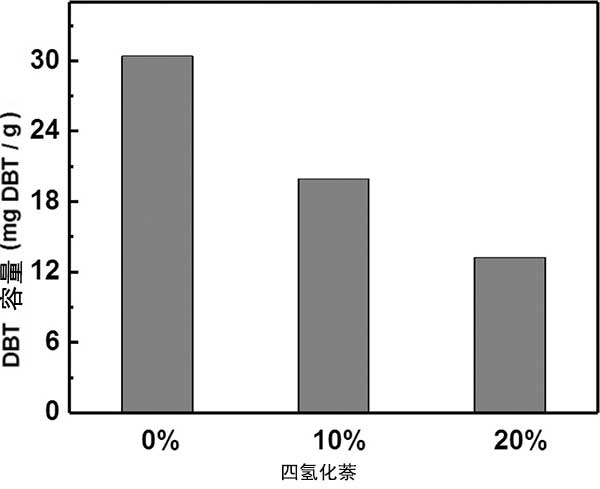 图4.在具有不同质量分数的四氢化萘存在下活性炭对DBT的吸附容量。